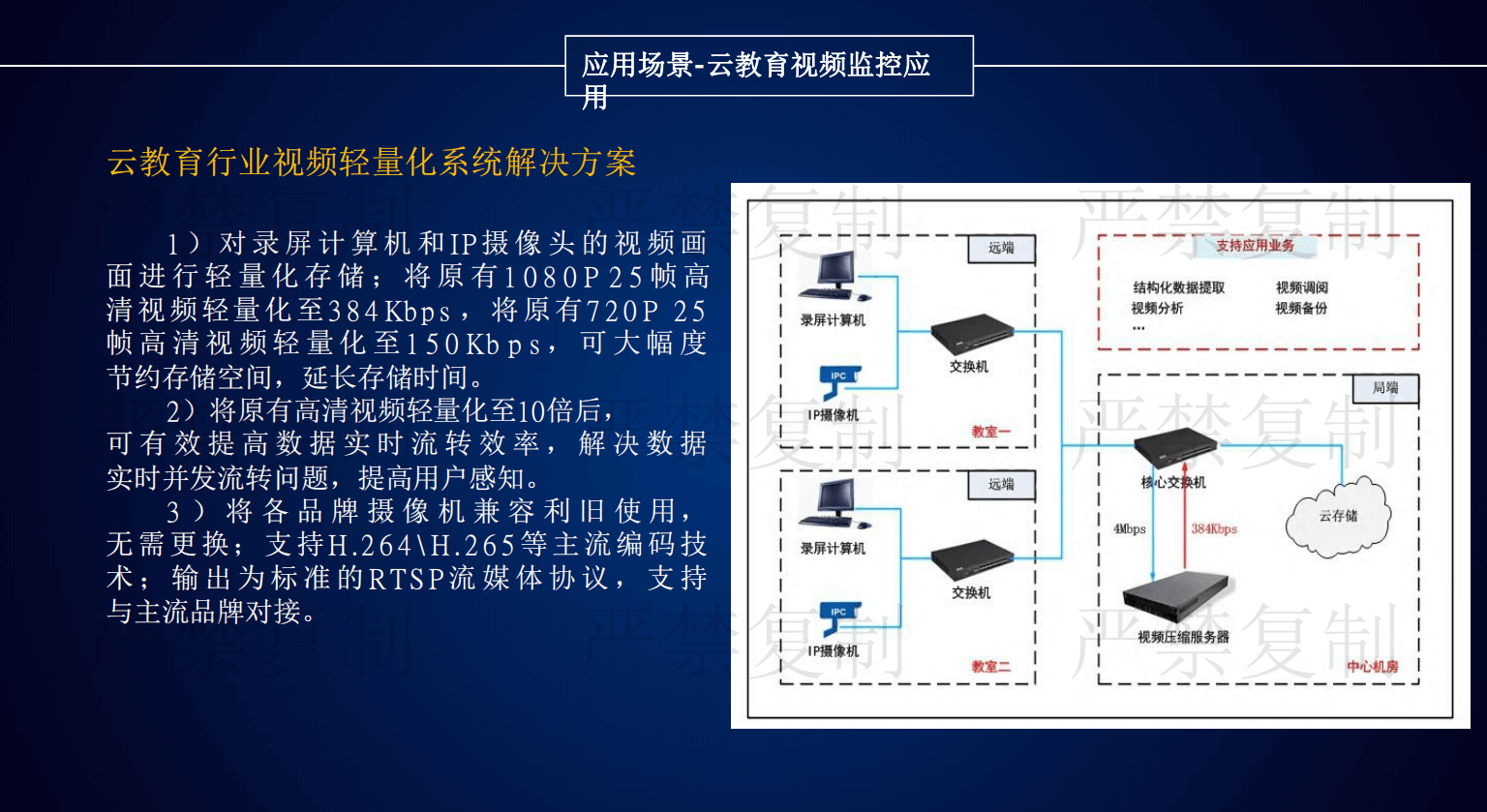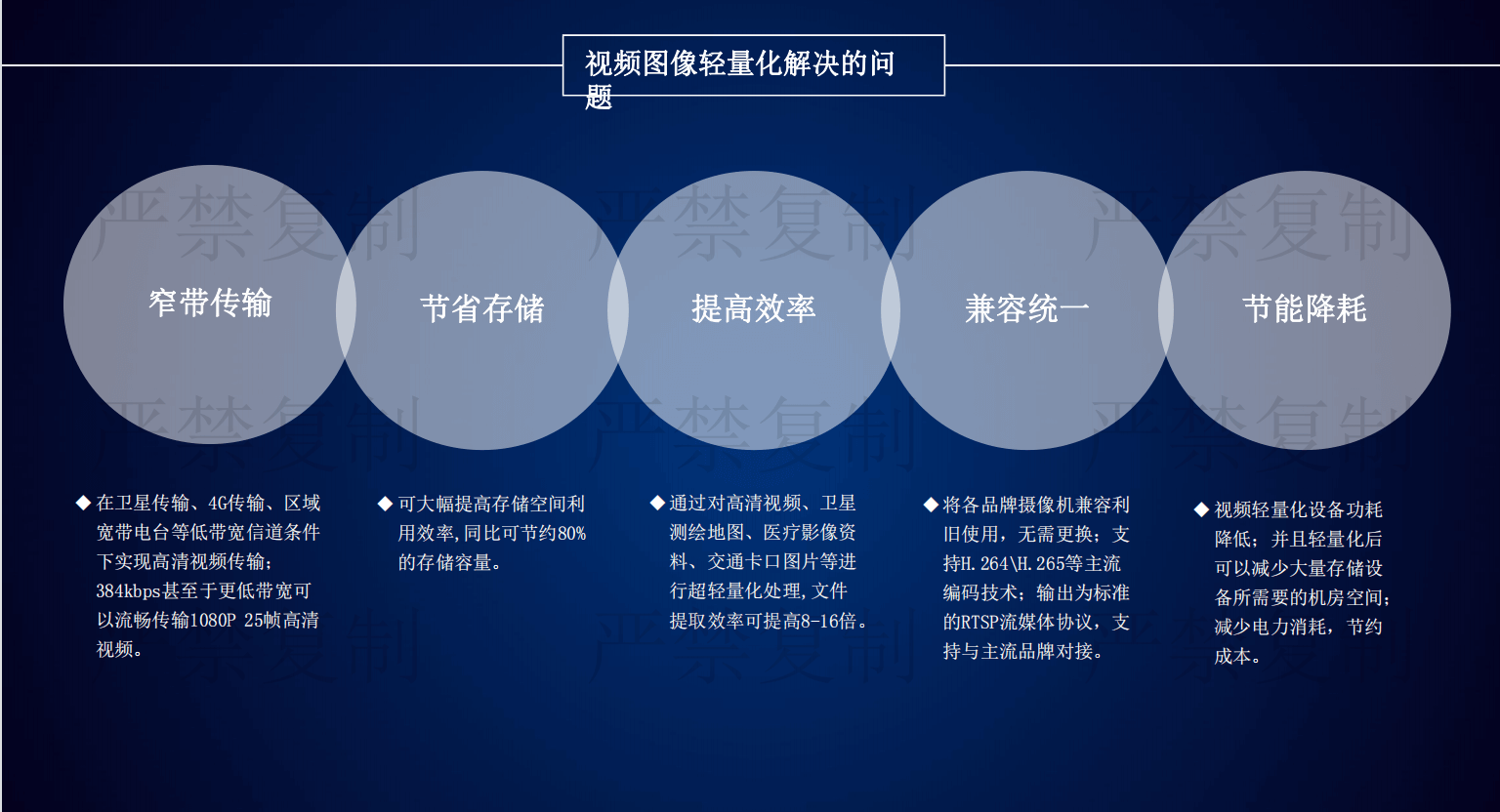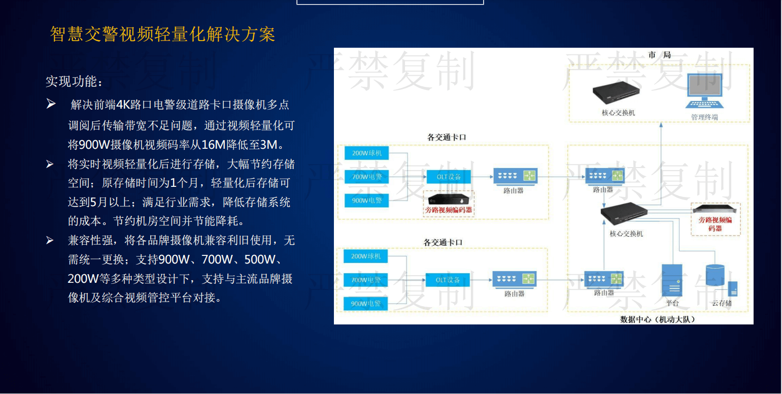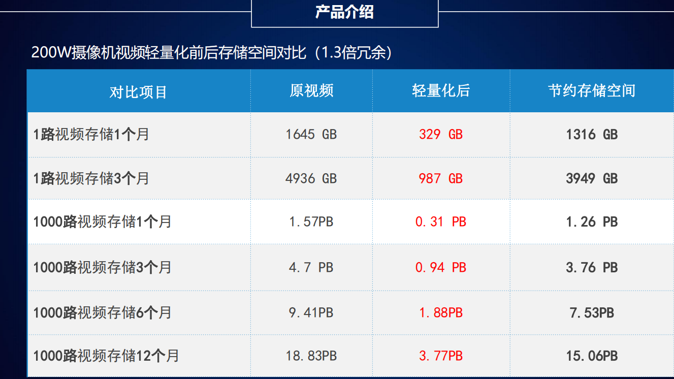 目前安防監(jiān)控領(lǐng)域存在三大痛點(diǎn):第一是海量視頻數(shù)據(jù)存儲(chǔ)導(dǎo)致項(xiàng)目投資成本不斷增加;二是視頻傳輸過程占用大量的帶寬資源;三是增加大量存儲(chǔ)設(shè)備電能消耗提高。由京華創(chuàng)展科技引進(jìn)的視頻圖像輕量化設(shè)備,解決了安防監(jiān)控領(lǐng)域的三大痛點(diǎn),該產(chǎn)品具有六大特點(diǎn):