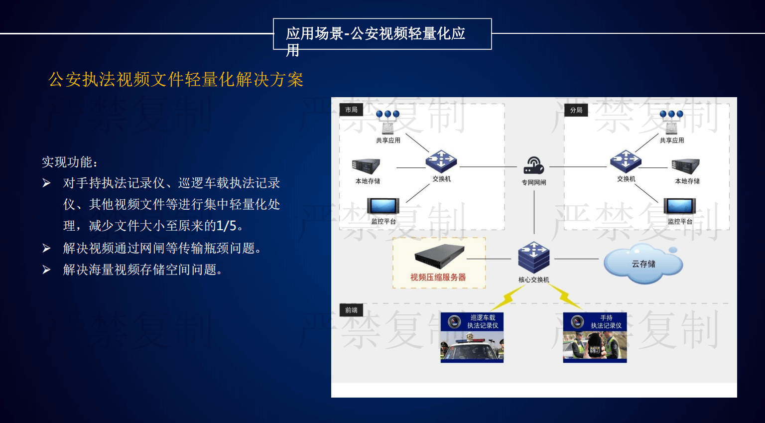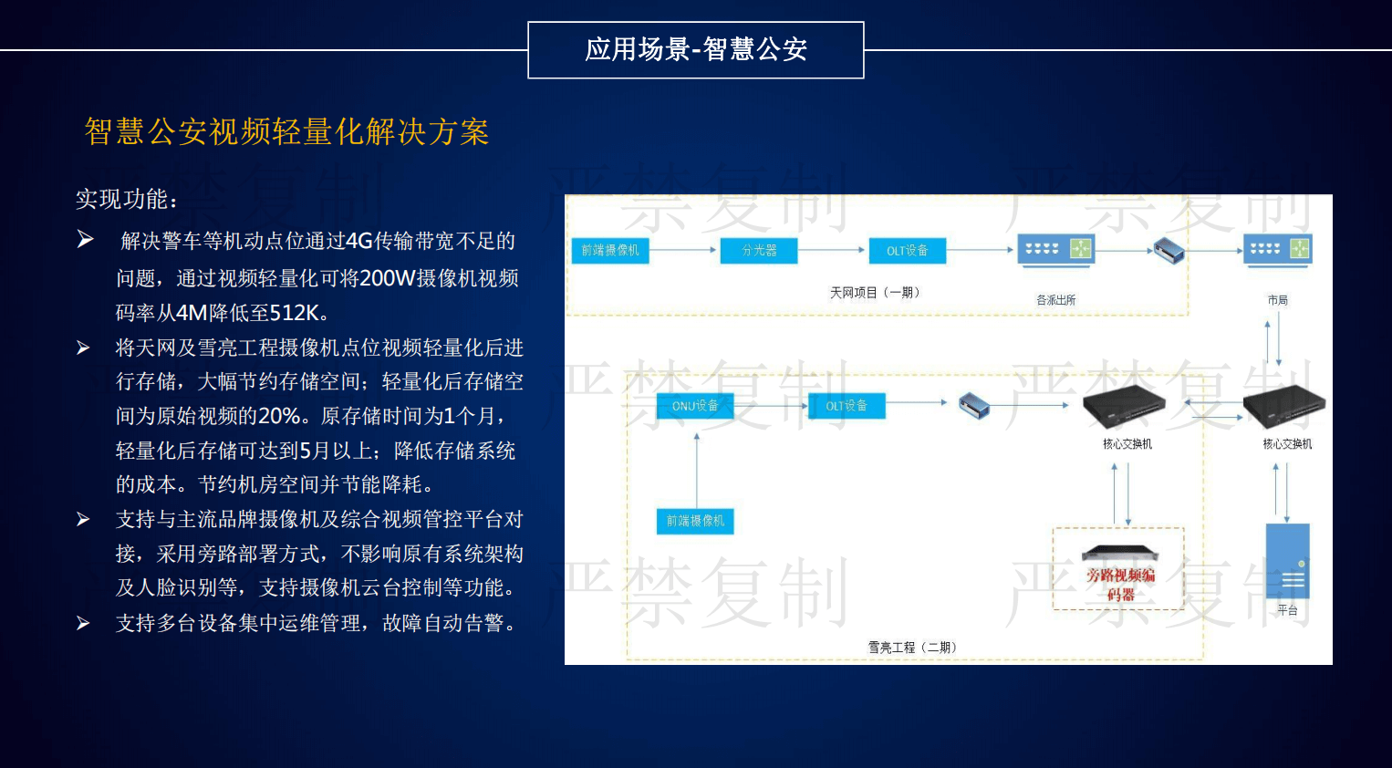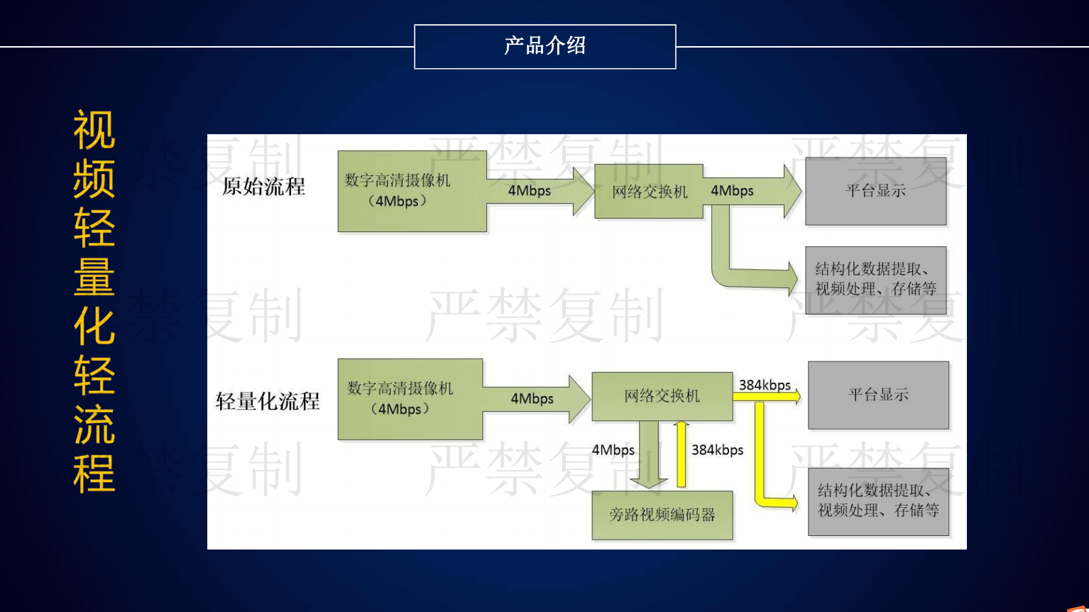 目前安防監(jiān)控領(lǐng)域存在三大痛點(diǎn):第一是海量視頻數(shù)據(jù)存儲(chǔ)導(dǎo)致項(xiàng)目投資成本不斷增加;二是視頻傳輸過程占用大量的帶寬資源;三是增加大量存儲(chǔ)設(shè)備電能消耗提高。由京華創(chuàng)展科技引進(jìn)的視頻圖像輕量化設(shè)備,解決了安防監(jiān)控領(lǐng)域的三大痛點(diǎn),該產(chǎn)品具有六大特點(diǎn):
