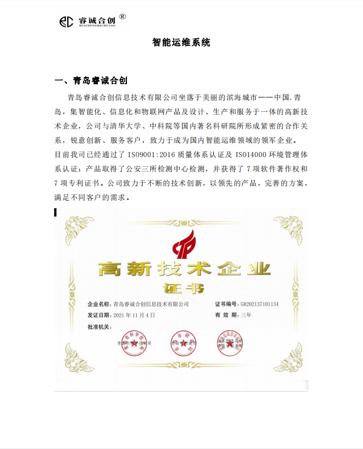 青島睿誠合創(chuàng)智能運維系統(tǒng)簡介