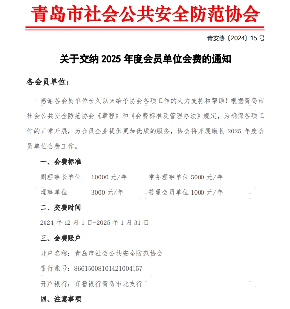 【交費(fèi)通知】關(guān)于交納2025年度會(huì)員單位會(huì)費(fèi)的通知