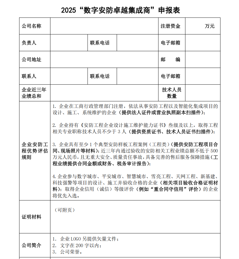 2025“數(shù)字安防卓越集成商”申報(bào)表.doc