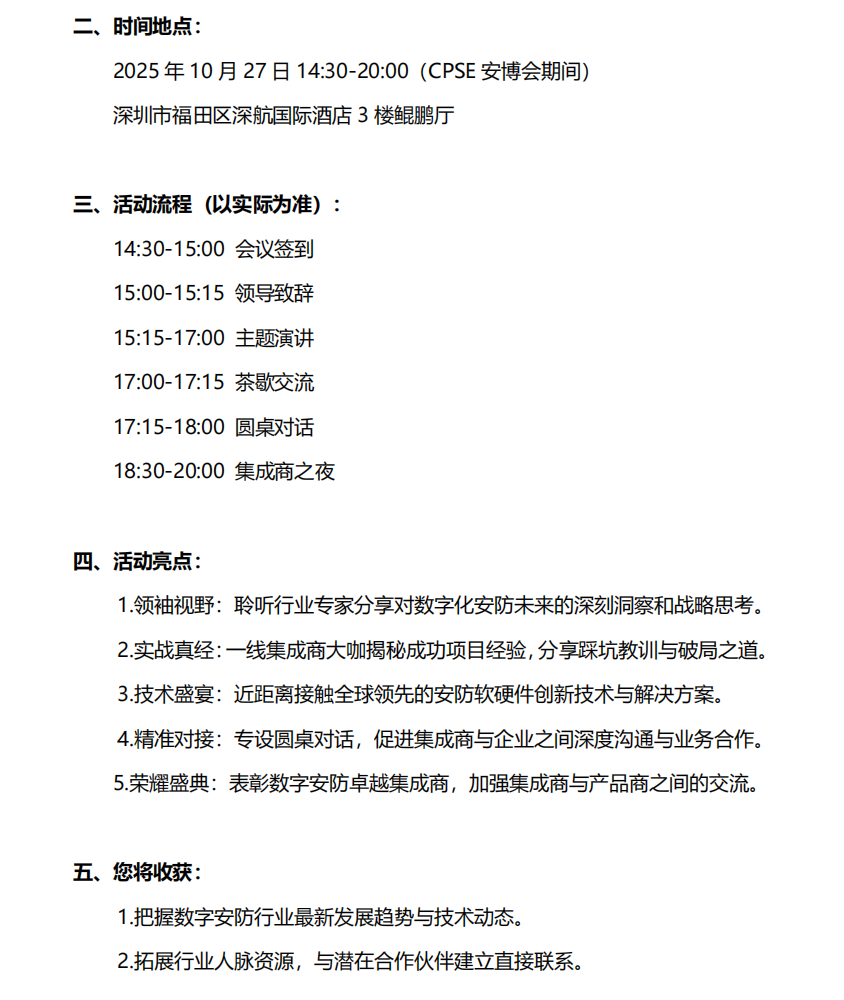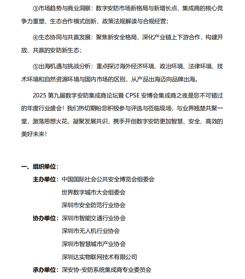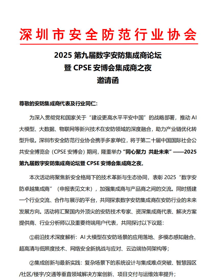 關(guān)于邀請(qǐng)參加2025 第九屆數(shù)字安防集成商論壇 暨 CPSE 安博會(huì)集成商之夜的函