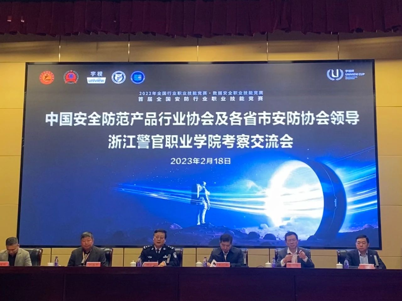 隨后,青島團(tuán)隊(duì)參加了浙江警官職業(yè)學(xué)院考察交流活動(dòng)。本次考察活動(dòng)有中安協(xié)秘書長(zhǎng)王楠、副秘書長(zhǎng)劉存信、專家咨詢辦主任劉鎖柱,浙江省安防協(xié)會(huì)秘書長(zhǎng)趙永華,浙江宇視科技有限公司副總裁林凱,浙江省司法廳黨委委員、院黨委書記顧金法出席。以及21個(gè)省市安防協(xié)會(huì)領(lǐng)導(dǎo)、院校代表50余人參加。